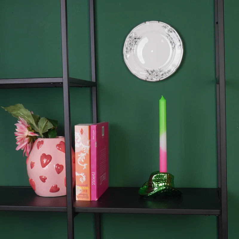 Candlestick - Cowboy Hat Candle Holder - Ceramic - Green- 13.5x11x7 cm