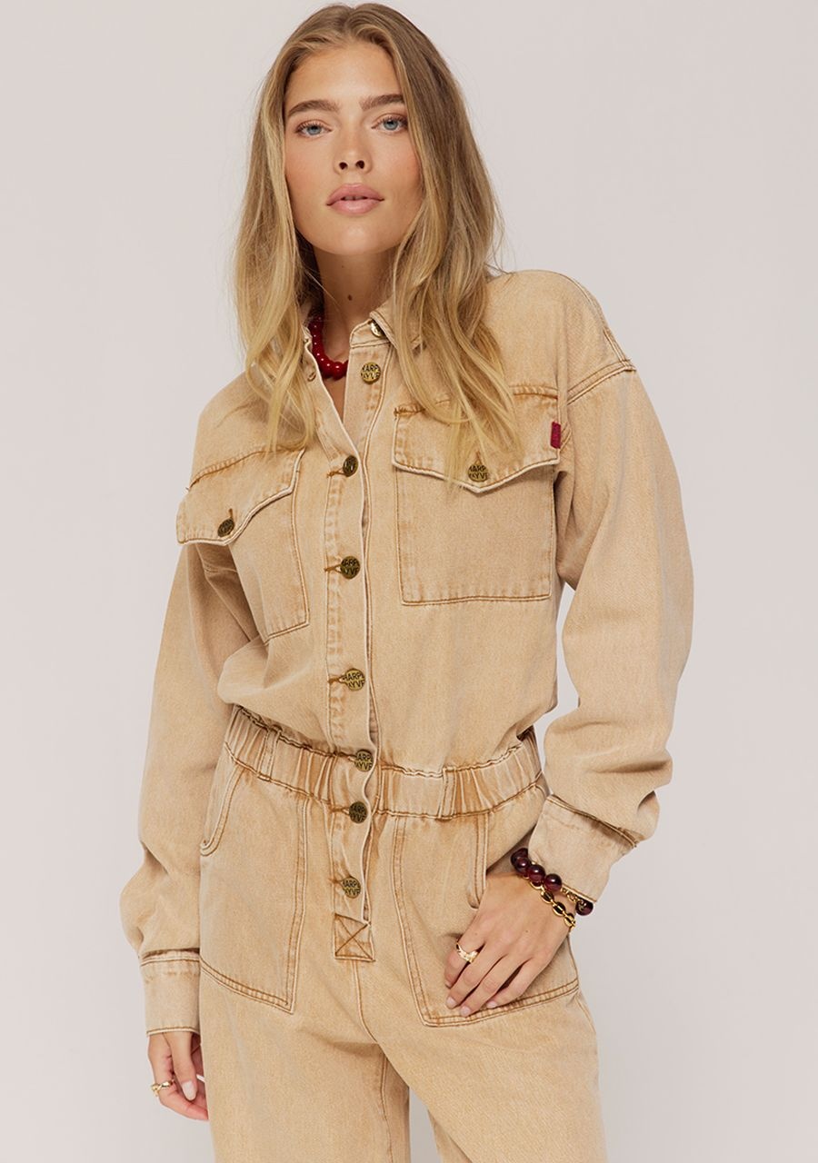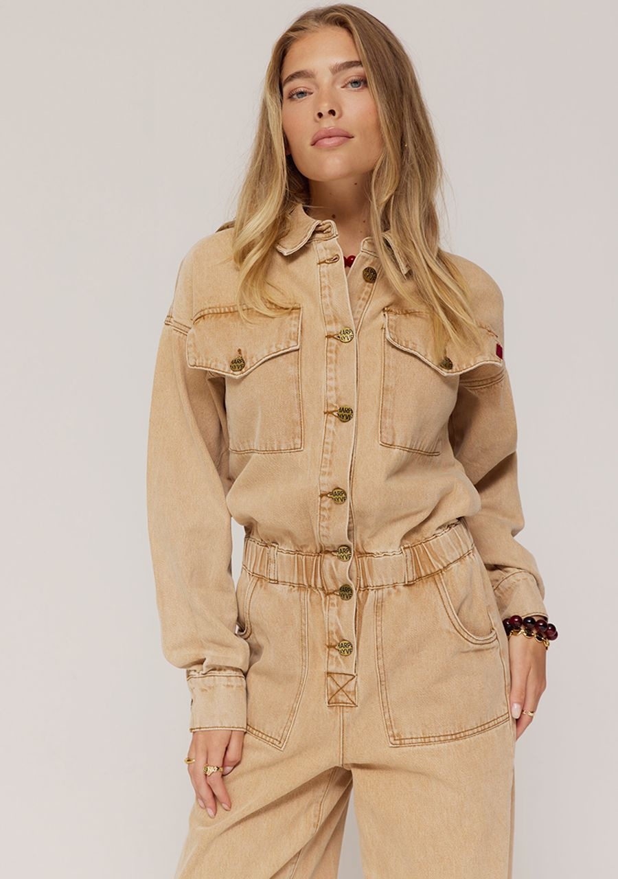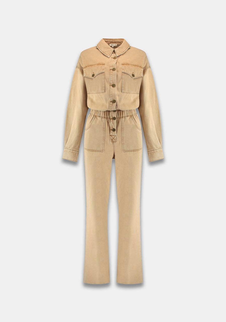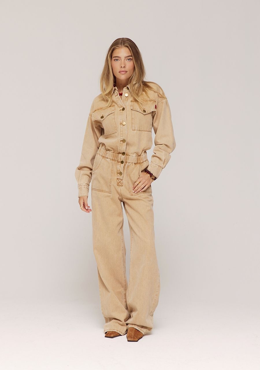 Effortless one-piece perfection. The JACKY jumpsuit in beige has a straight, casual fit with a button closure and tie belt at the waist. Made from a soft, textured fabric, this jumpsuit is comfortable yet looks clean and stylish. With chest pockets and straight legs, JACKY is a no-nonsense favourite for every day. Your go-to when you want to look put-together in seconds.