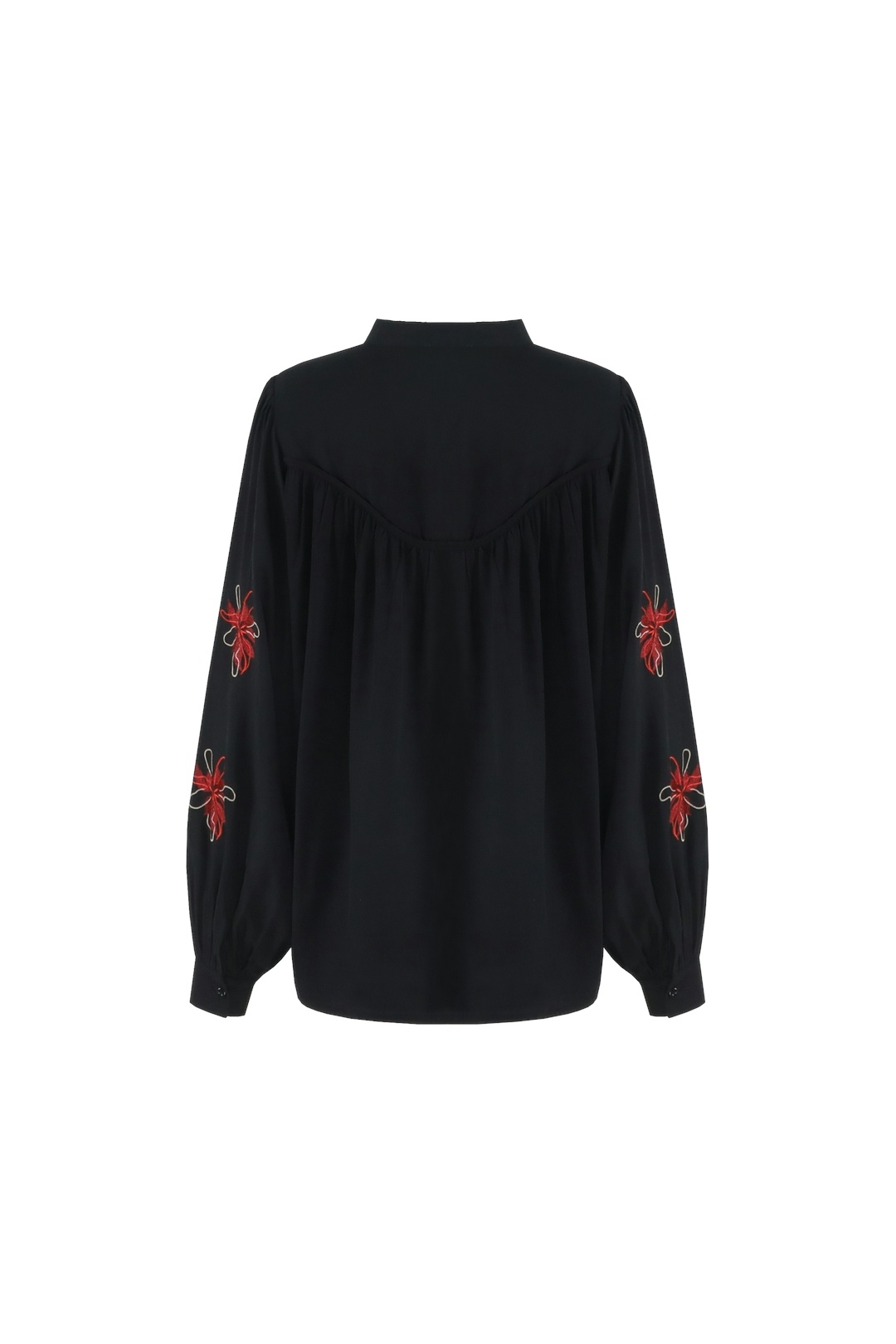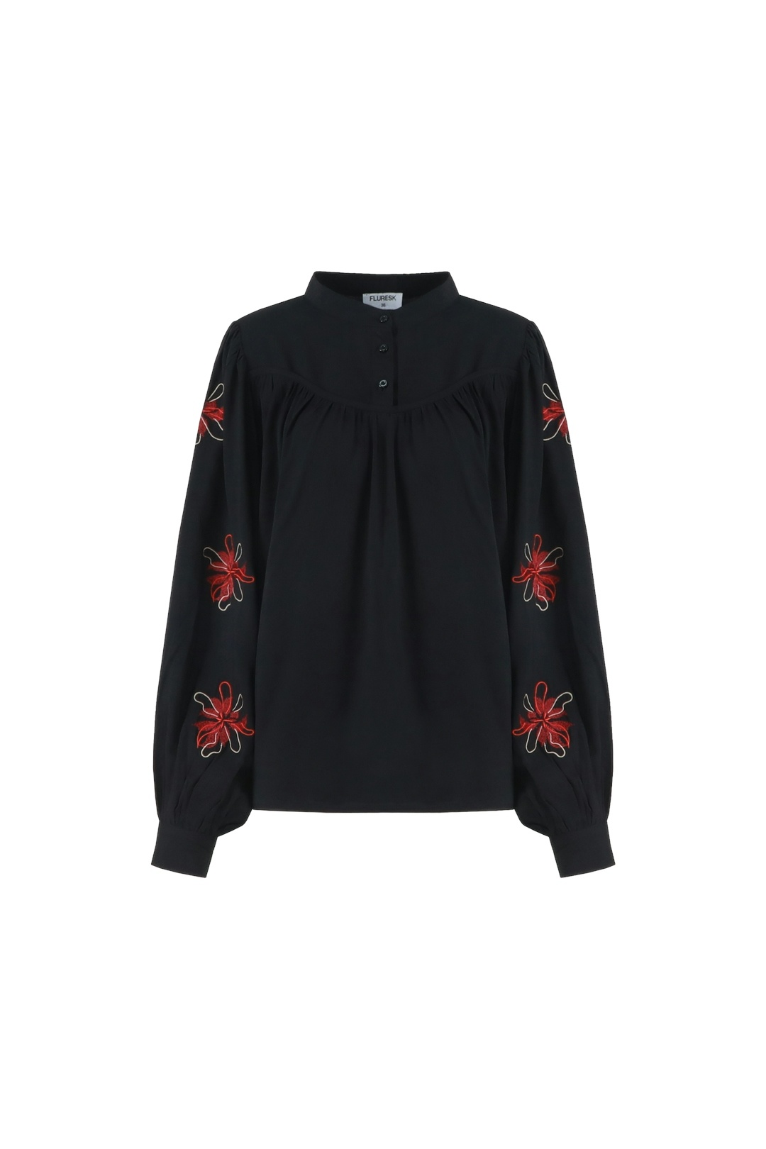The KIERA BLOUSE is proof that basic never has to be boring. The airy fabric, puff sleeves and embroidered flowers on the sleeves give your look a romantic twist with a spicy edge. Wear it with jeans or cool trousers for that perfectly balanced outfit.