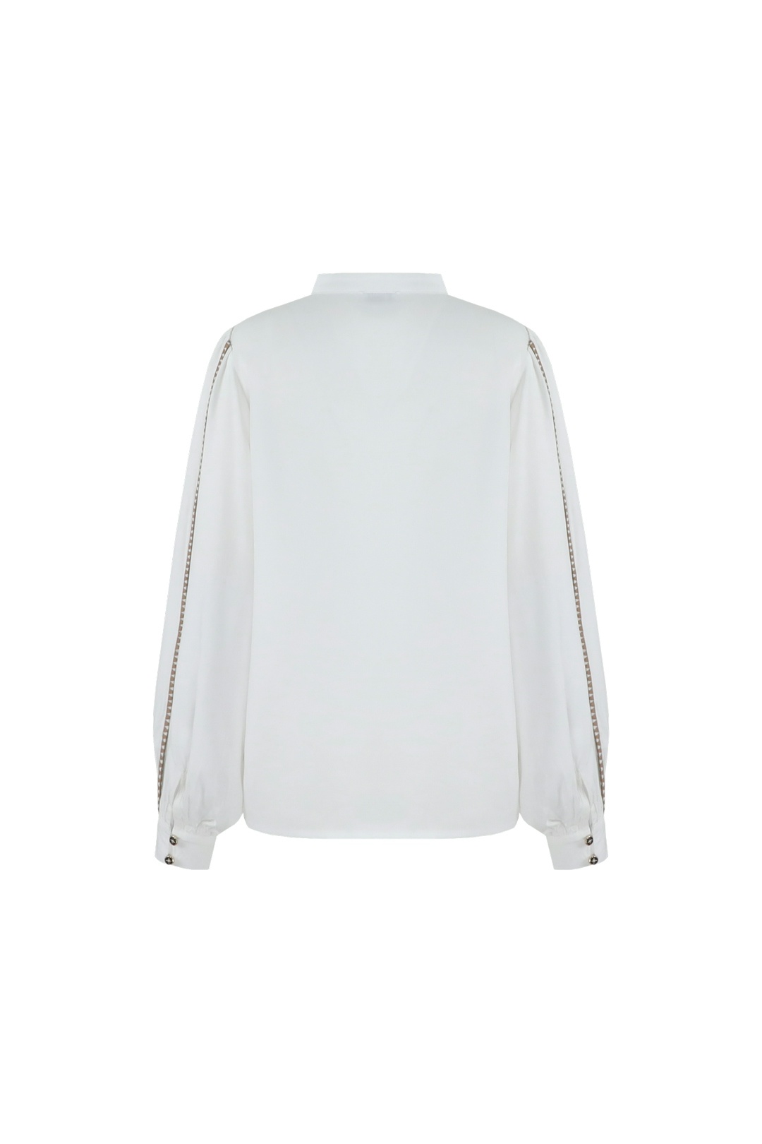 Ready to enhance your wardrobe? The NOORAYA BLOUSE combines elegance and edge in one dreamy item. The lace details, button-through closure and structured fit make this an all-time favourite. Easy to dress up or down – just add your sparkle.