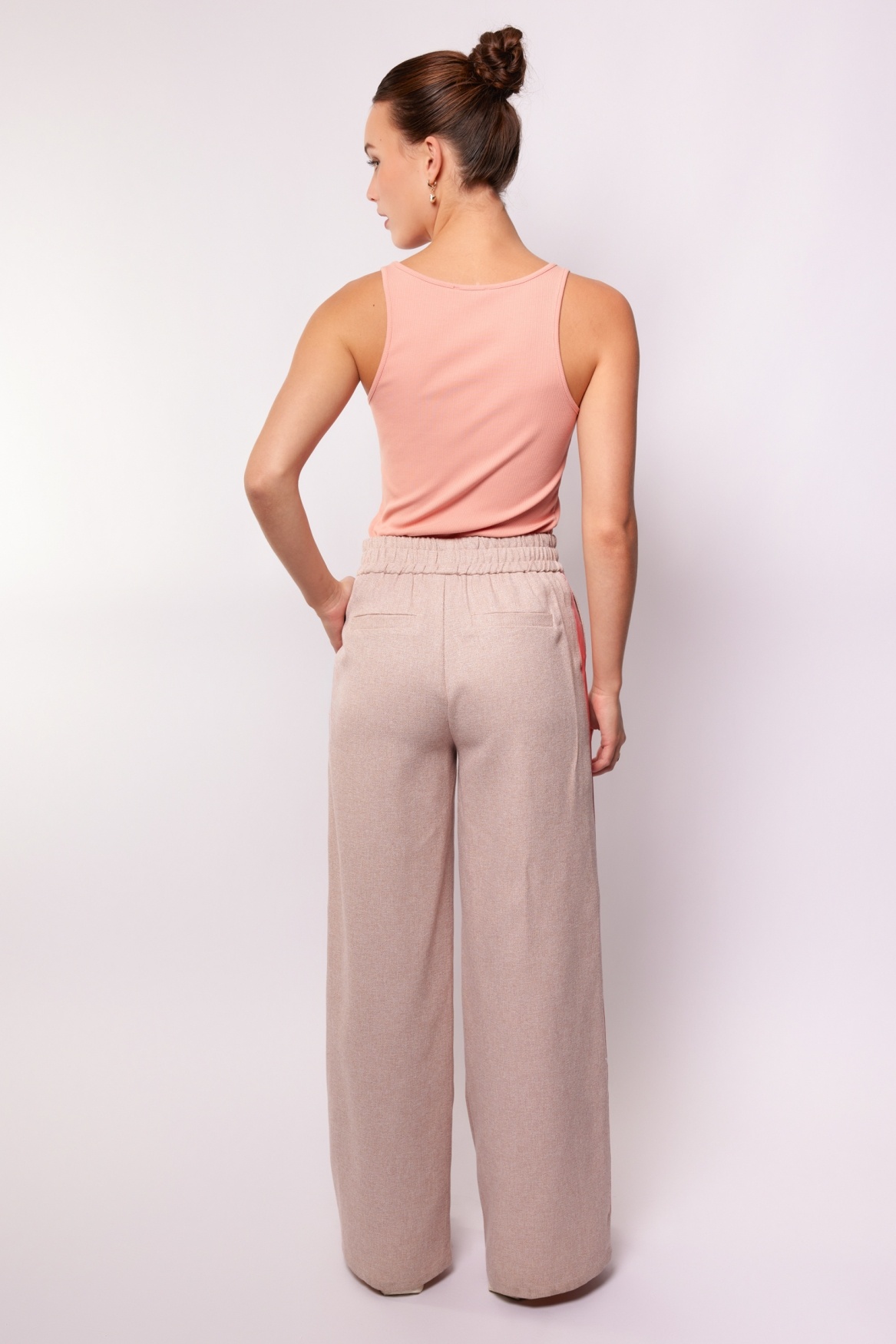 Comfortable and stylish: the NYX TROUSERS are soft, structured trousers with a playful twist. The satin piping along the side adds a feminine flair to the wide leg fit. Pair with the RO JACKET for a coordinated look, or wear with a blouse for a chic-meets-casual outfit.