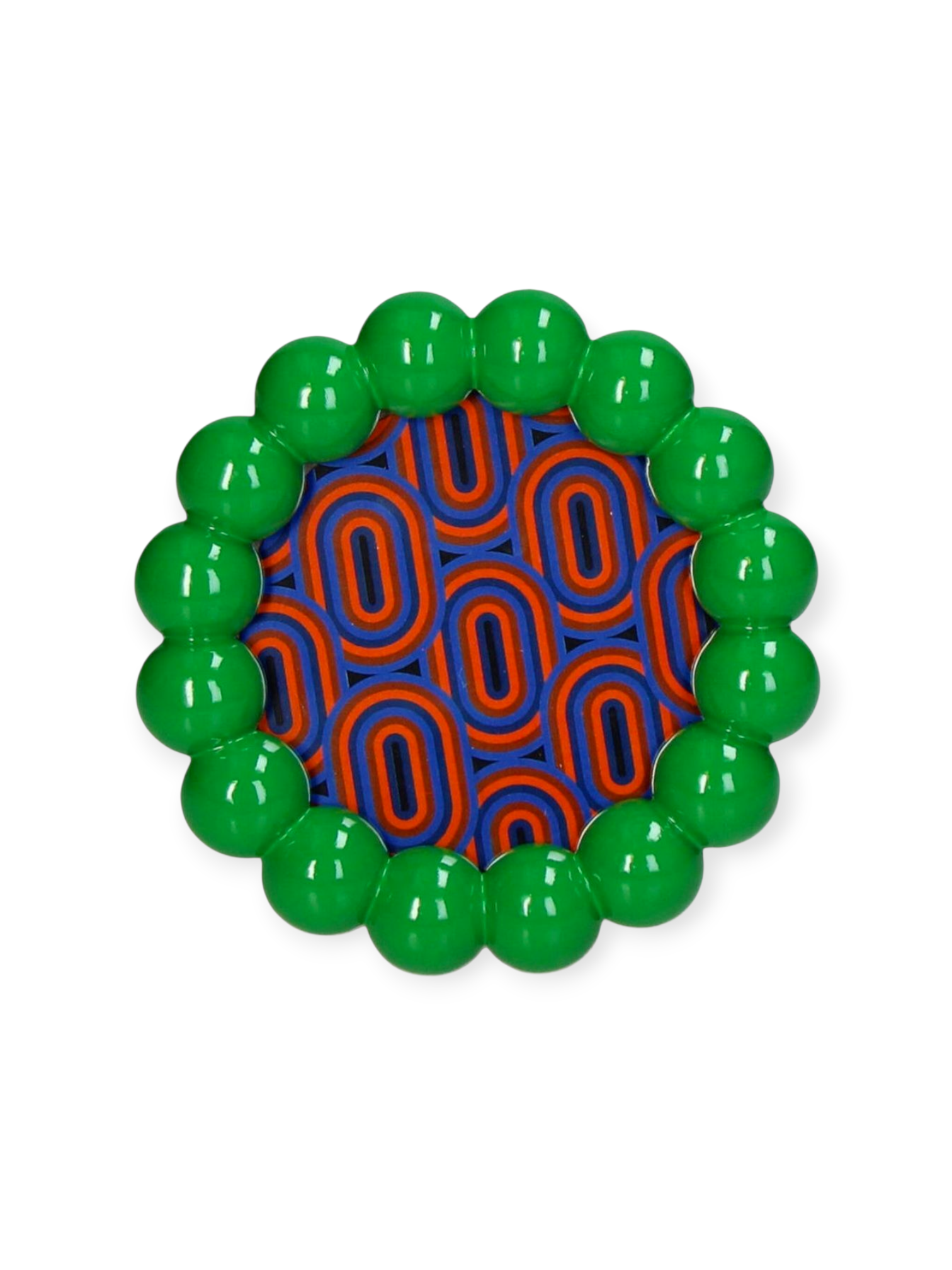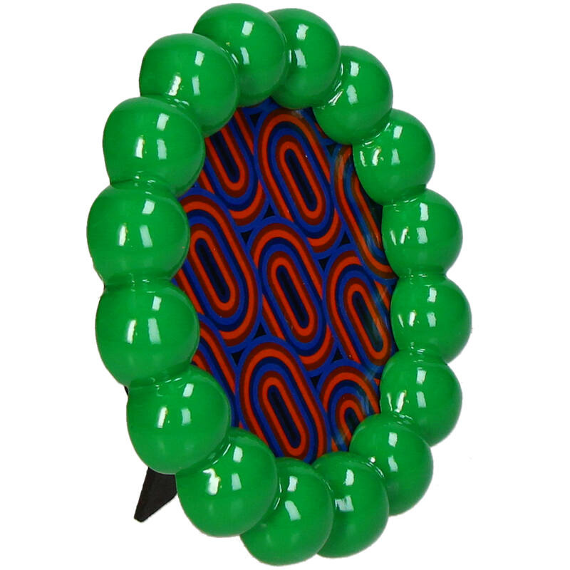 A green polyresin photo frame with beads, measuring 10 x 10 cm, ideal for a sunny presentation.