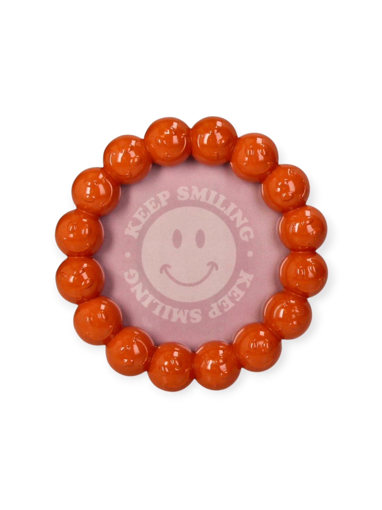 An orange polyresin photo frame with a smiley theme, ideal for displaying your favourite photo with a smile.