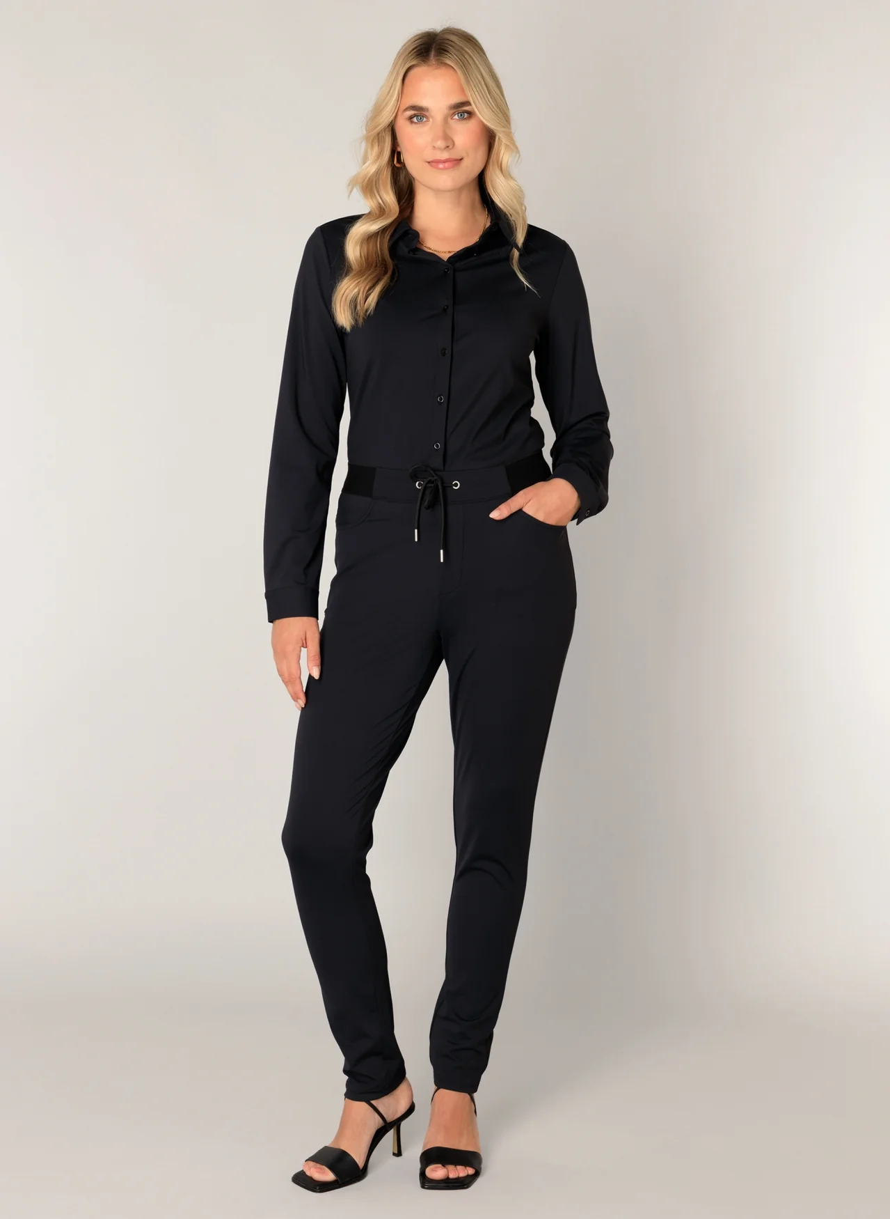 Tiana is a slim-fit travel trouser made from polyamide and elastane, with an elasticated waistband and two pockets.