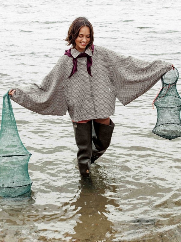 Deze geruite jas heeft een perfect silhouet met een cape-effect aan de achterkant en twee steekzakken. De blinde knoopsluiting en oversized armsgaten zorgen ervoor dat elke warme sweater of knit eronder past.