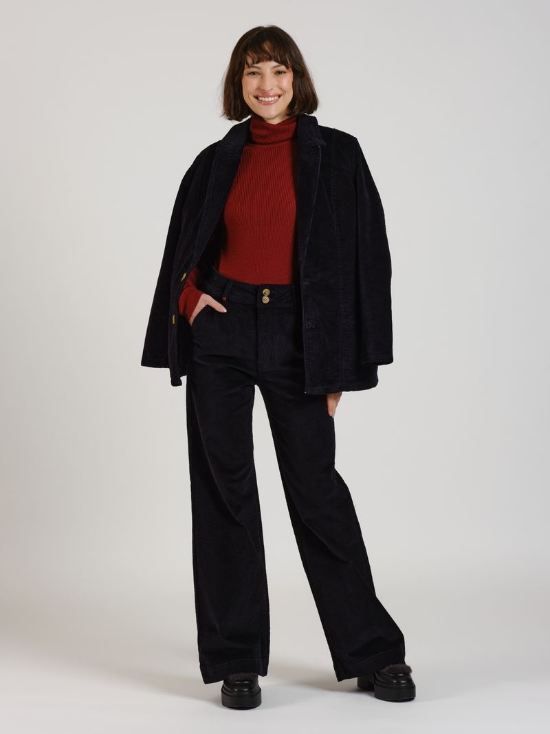 De INES-blazer met zijn oversized snit kan als overshirt gedragen worden. Combineer het met onze Corduroy Flared Pants Faustine - black voor een moderne en relaxte look!