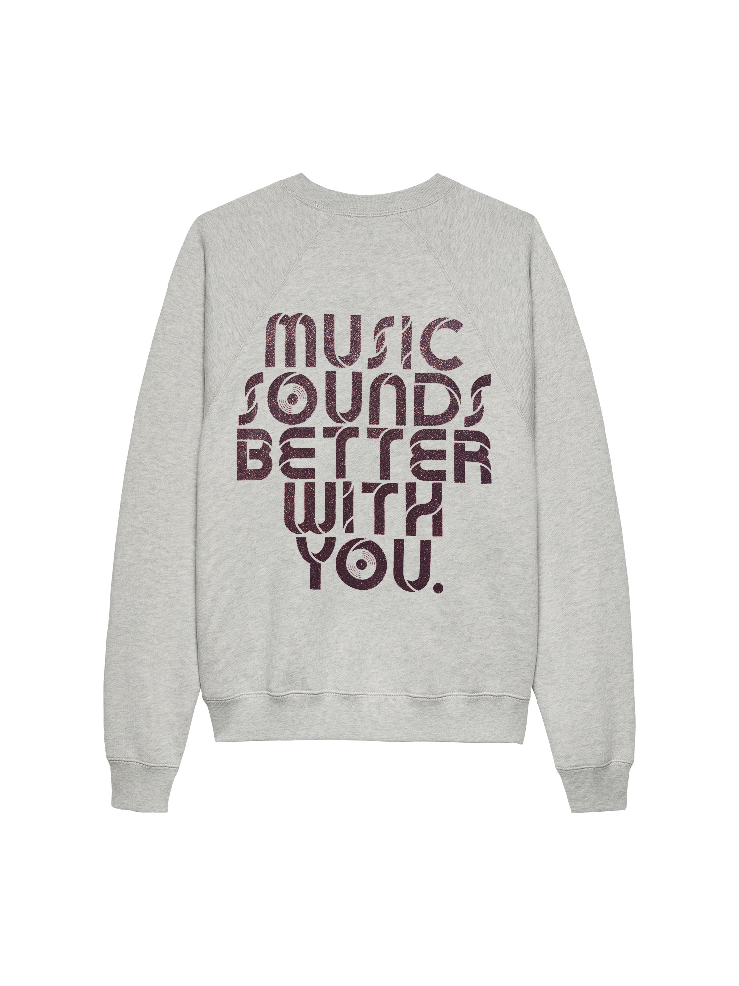 Raglan sweater met een in-house ontworpen graphic op de rug. De sweater heeft een zacht brushed effect aan de binnenkant.