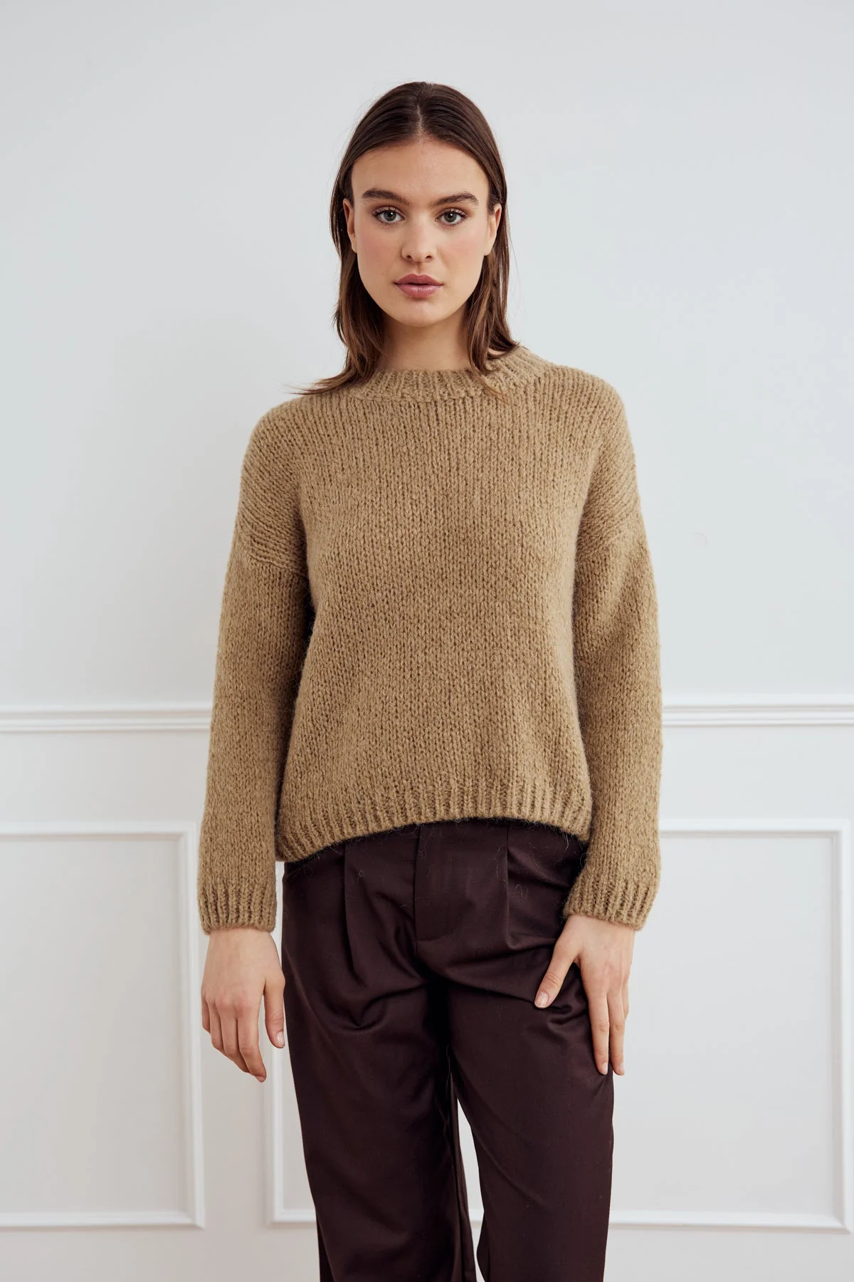 Pasvorm: Regular FitGeproduceerd in: 58% Acrylic, 20% Wool, 12% Nylon, 10% MohairMaattabel: True to sizeKleur: Beige/Camel