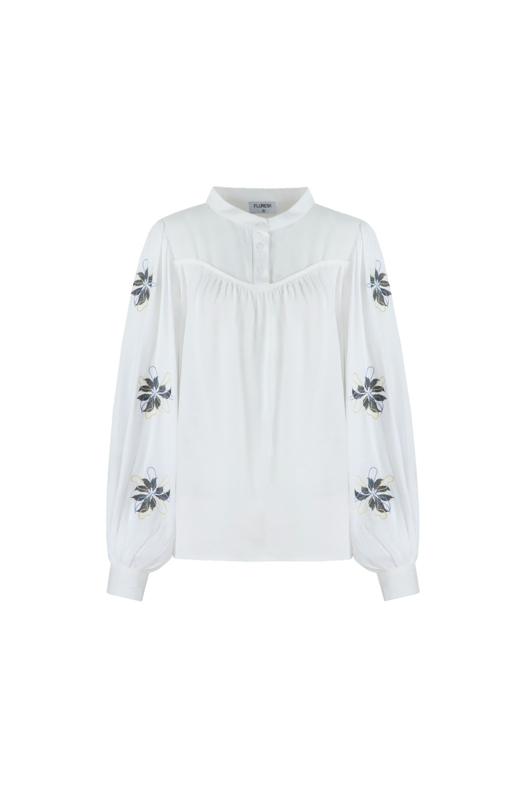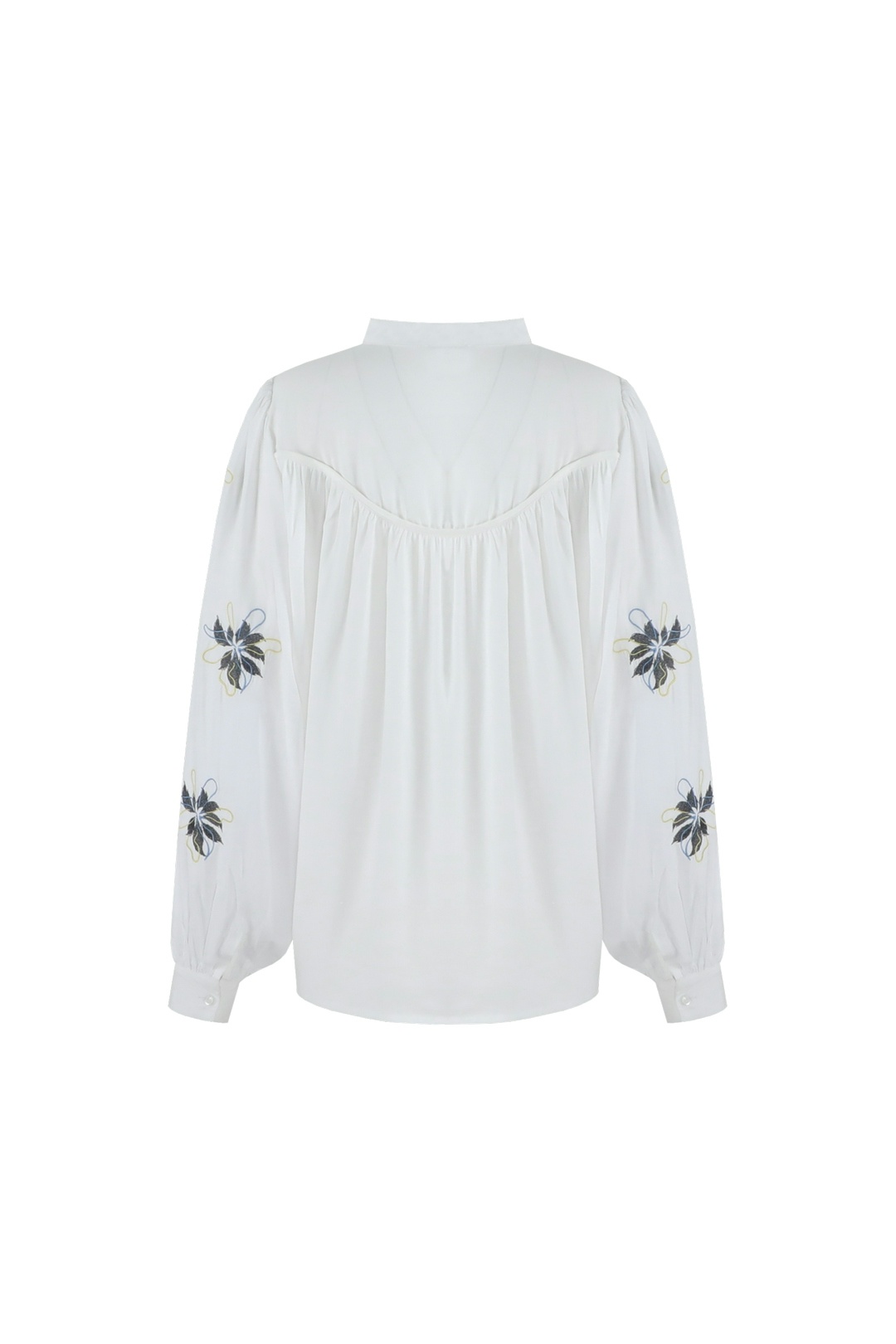 De KIERA BLOUSE is hét bewijs dat basic never boring hoeft te zijn. De luchtige stof, pofmouwen en geborduurde bloemen op de mouwen geven jouw look een romantische twist met een spicy edge. Draag ‘m met een jeans of juist met een stoere broek voor die perfect balanced outfit.