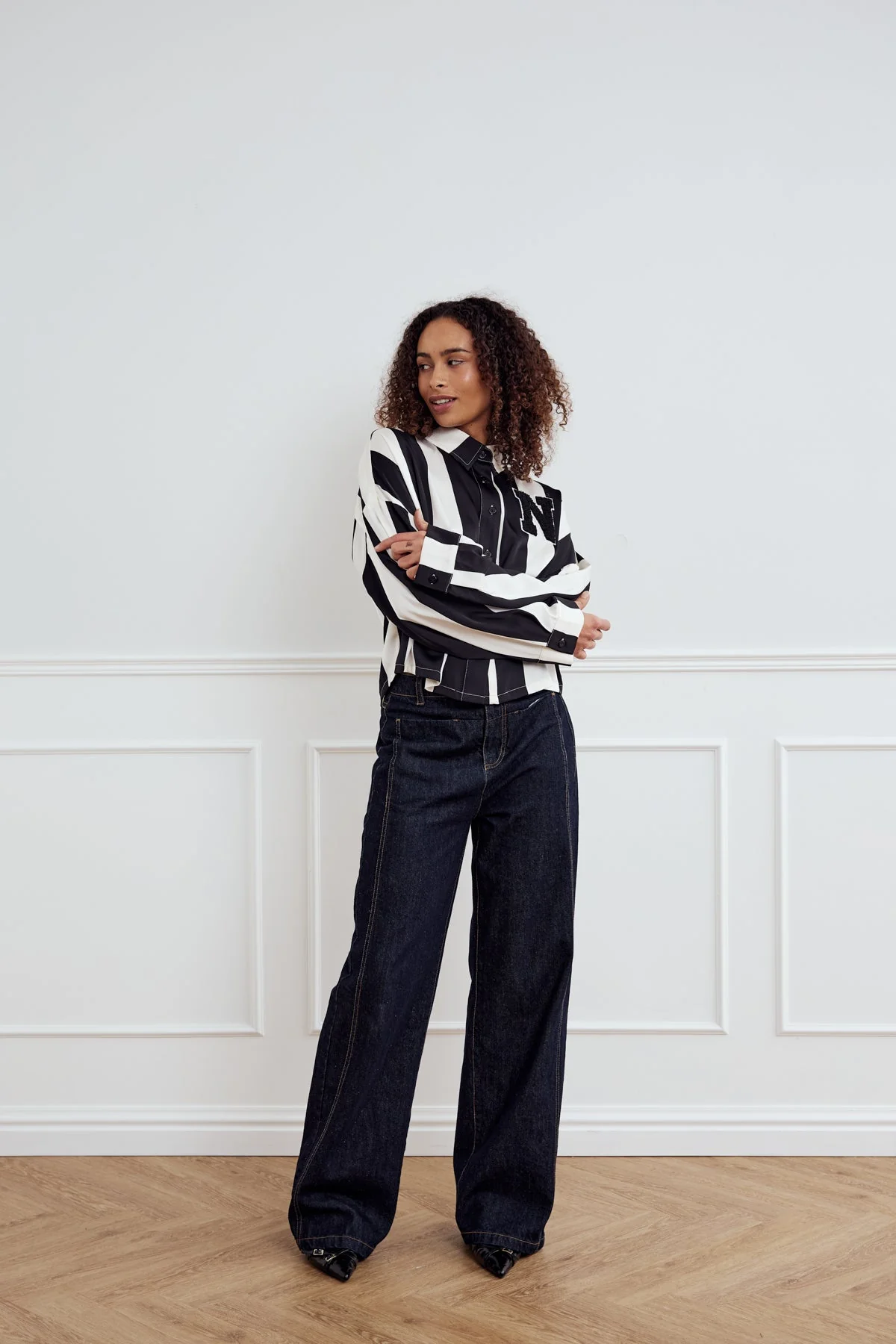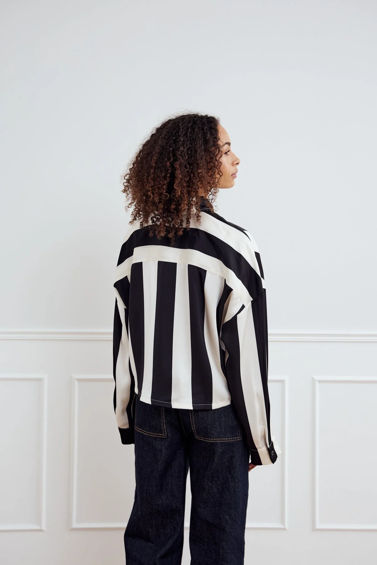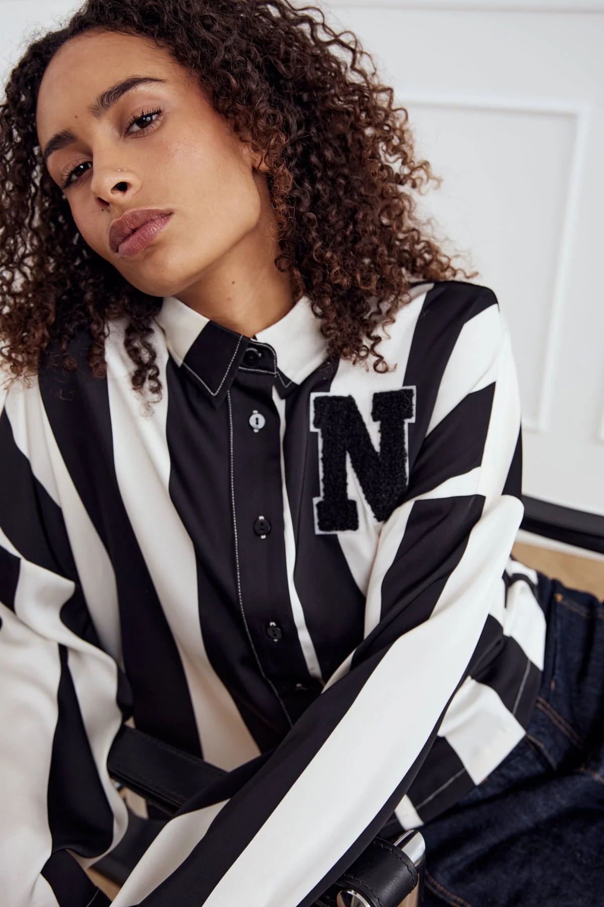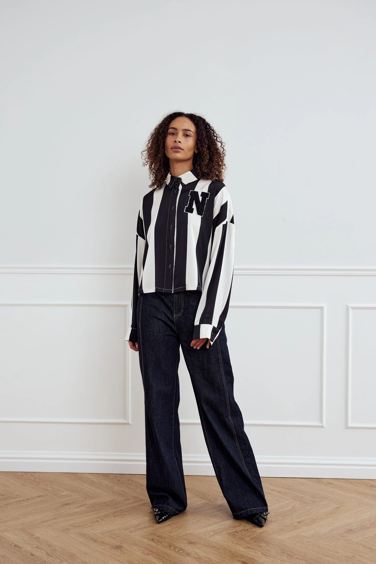 Liara N Shirt Black Ivory Stripe