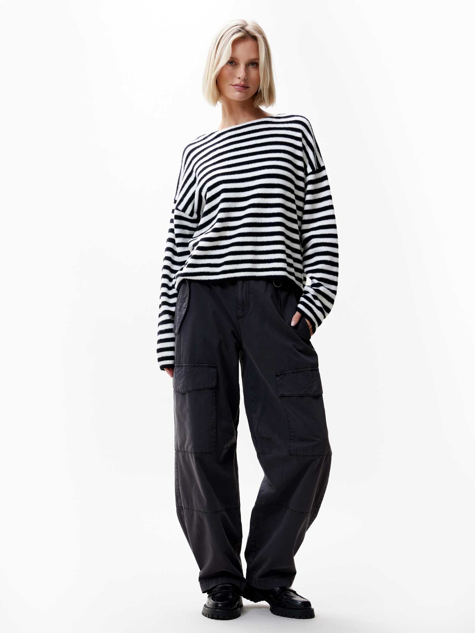 Deze ‘Soft Stripe’ trui met horizontale strepen valt tot de heup. De trui heeft een relaxte pasvorm met verlaagde schoudernadenModel is 1.76m lang en draagt maat 36Loose fitLosvallend pasvorm100% PolyamideDesigned in Amsterdam. Made in China