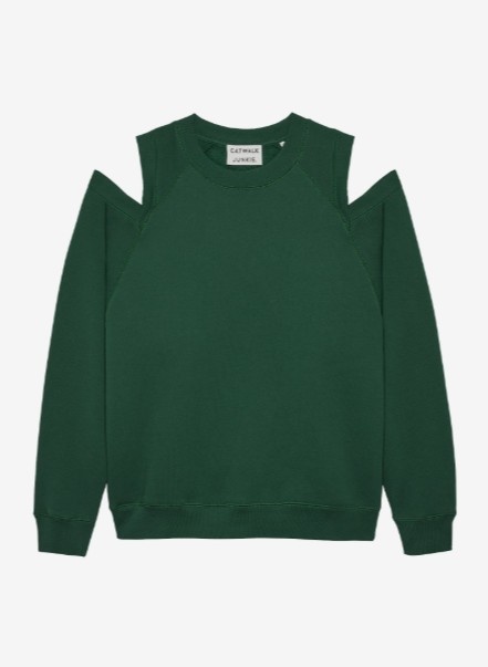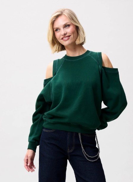 Deze sweater heeft een losvallende pasvorm en open shouder details.