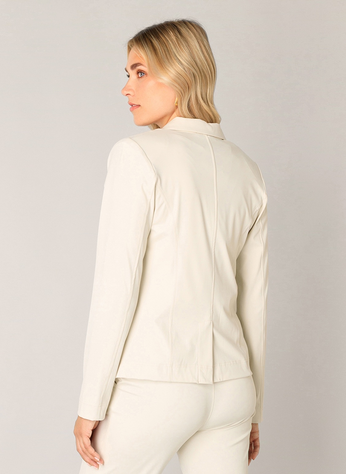 De Travel blazer Thea heeft een slanke pasvorm en is gemaakt van duurzaam en rekbaar polyamide. De blazer is voorzien van schoudervullingen, waardoor een elegant silhouet ontstaat.