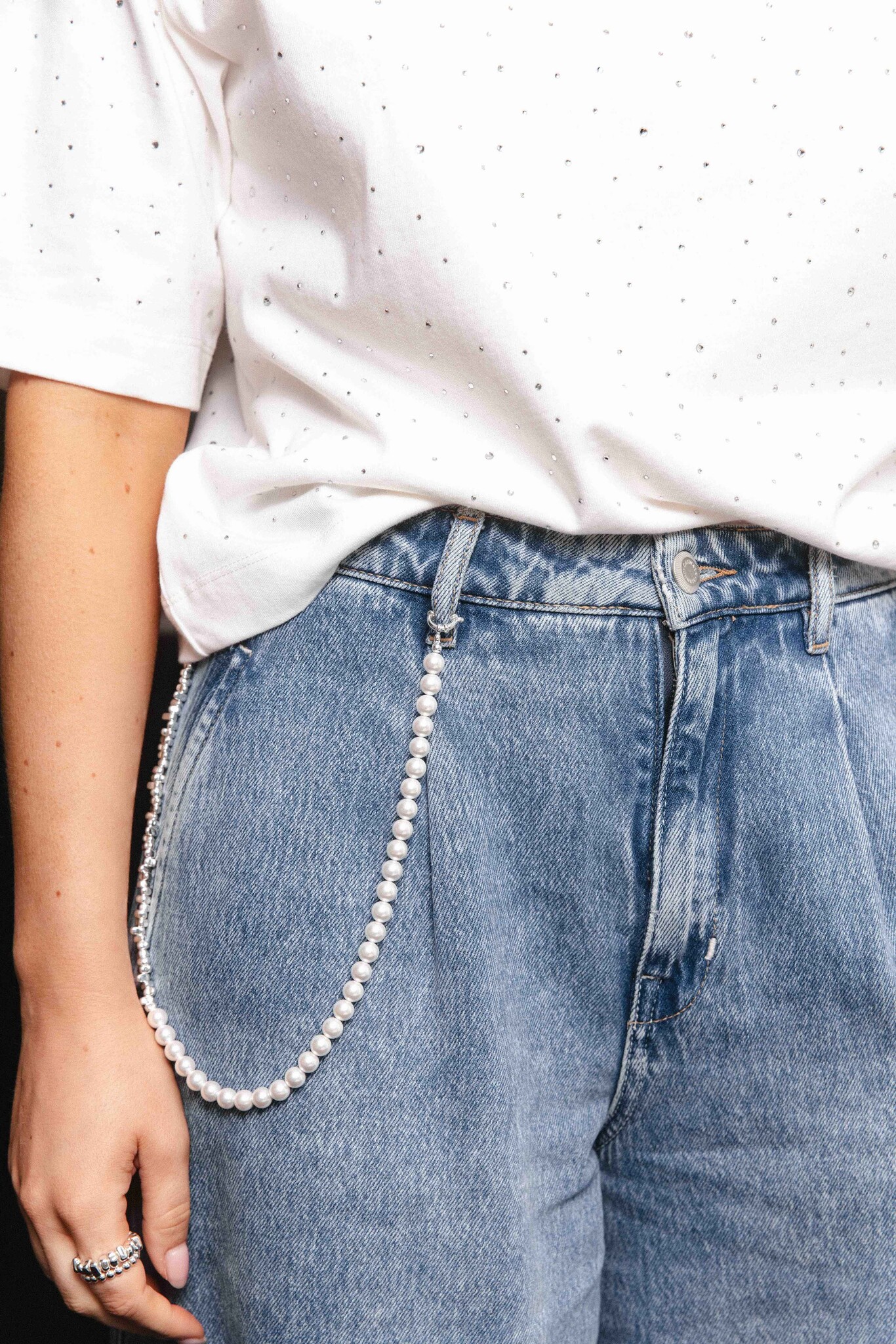 Gemaakt van baroque pearl & Silver plating Stainless steel kralenLengte ketting 47cmDe ketting kan ook trendy als een koortje aan je riemlussen gehangen worden!